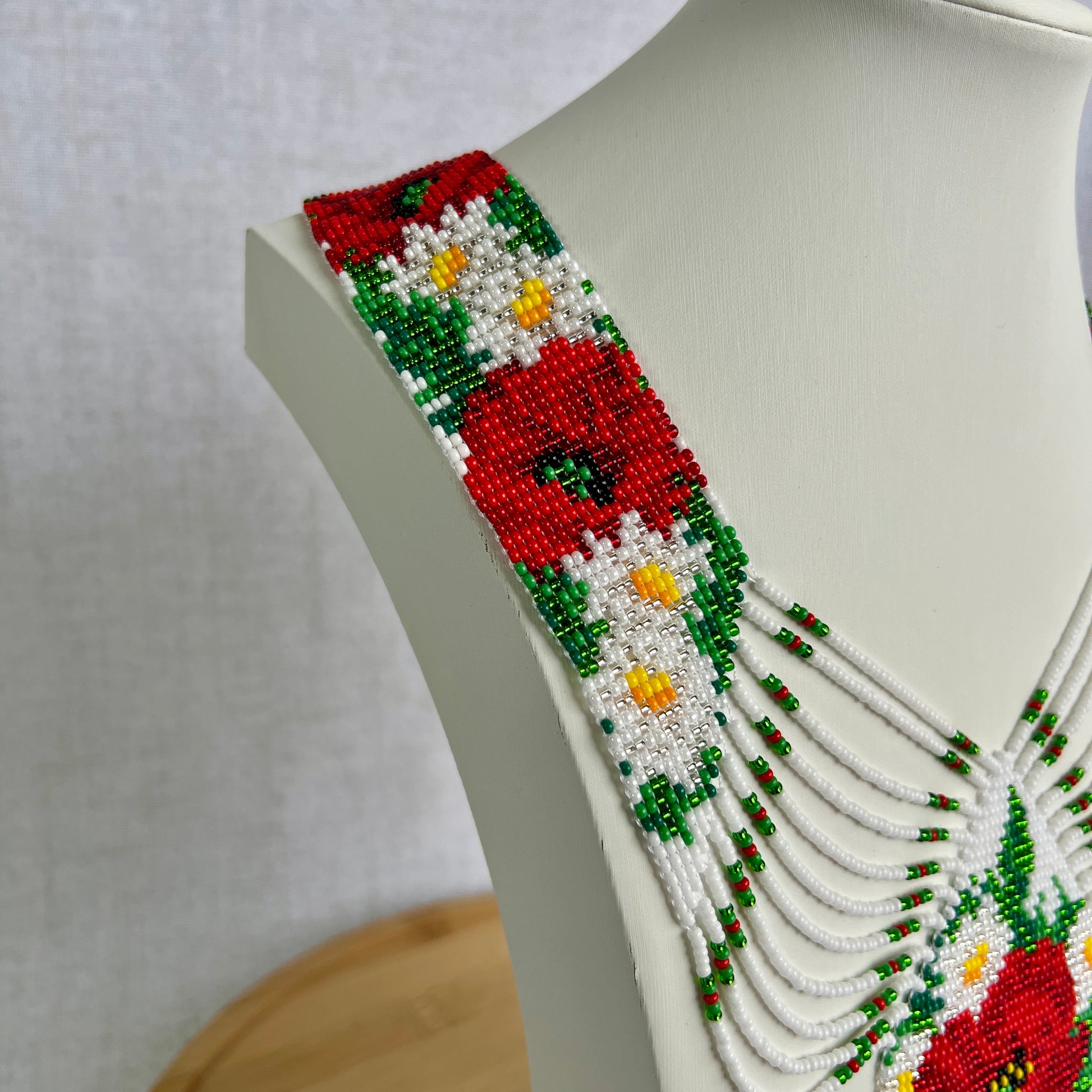 This gerdany necklace belongs to the premium collection: it is wider, features an intricate multi-layered pattern, and requires 8–10 hours of handcrafted work by an experienced artisan. Every bead is woven with care to create a true work of art.