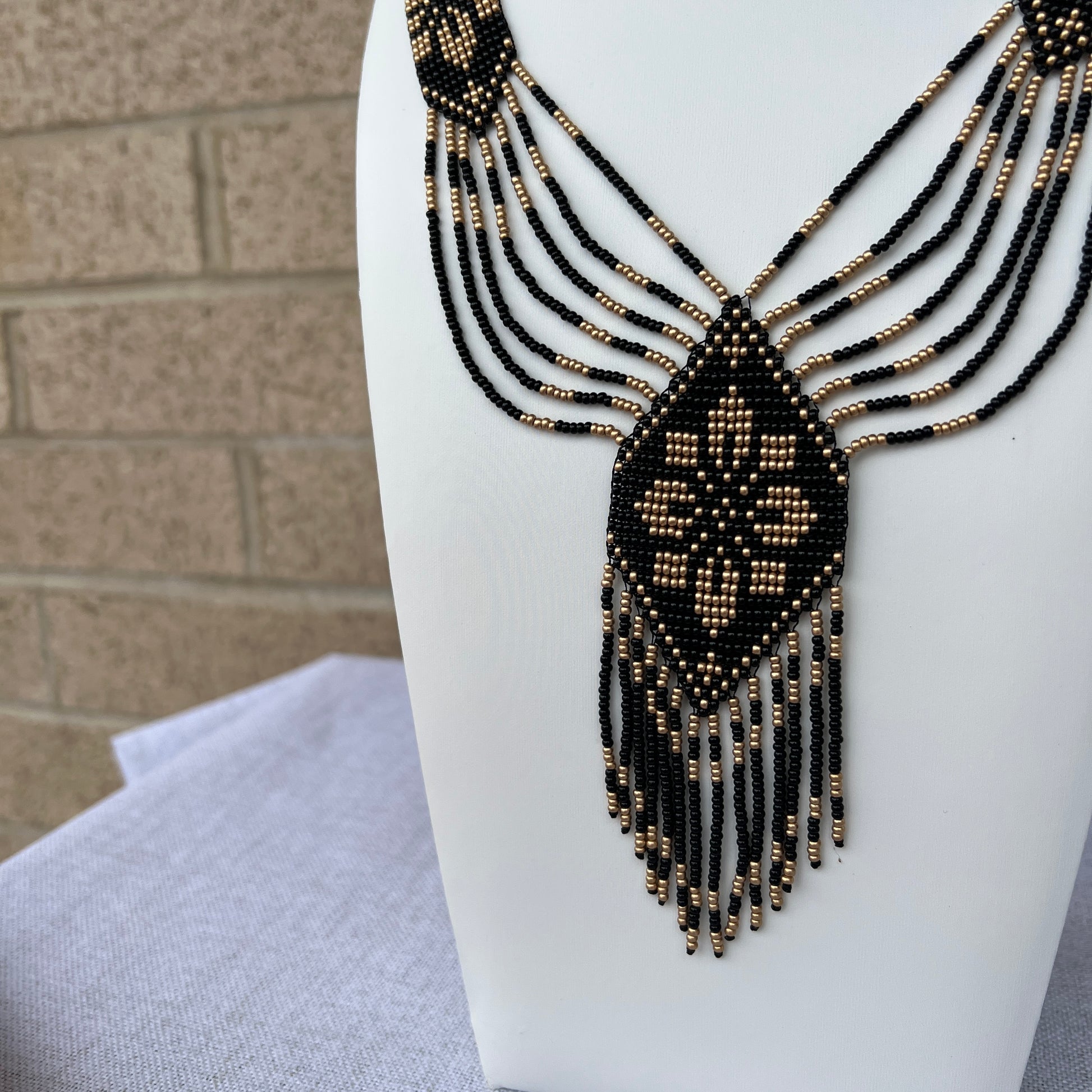 The beadwork is woven on a strong nylon thread to ensure long-term wear and reliability.