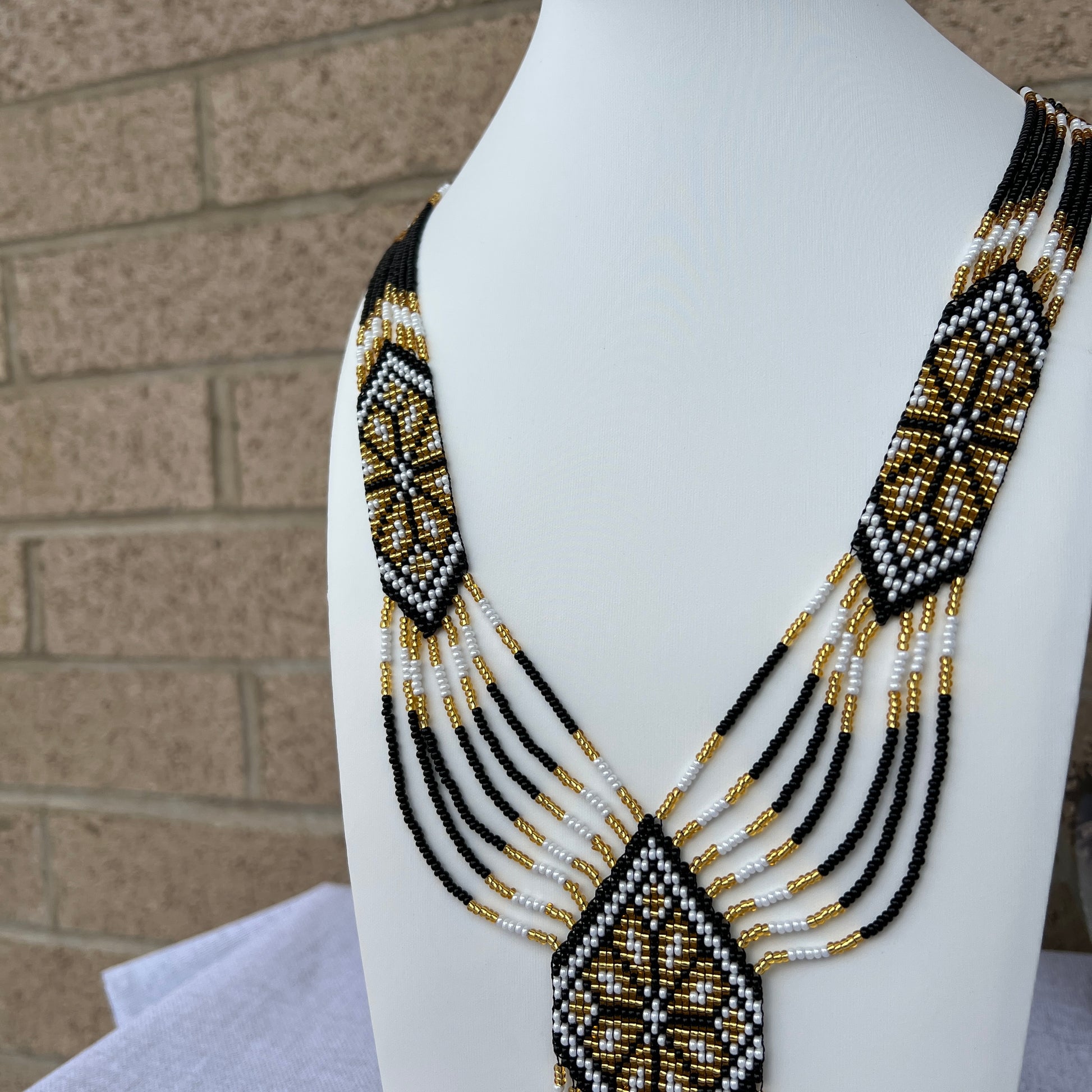 The beadwork is woven on a strong nylon thread to ensure long-term wear and reliability.